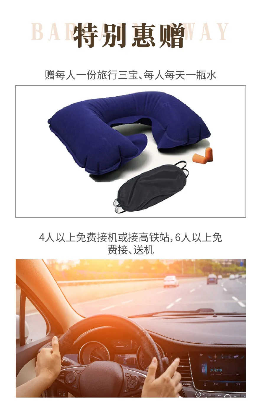 8.【贴心旅行】4人以上含4人免费赠送接机或接高铁站(单程);6人以上含6人同时报名该线路,免费赠送接、送各一趟;(赠送项目不参与不退费)
